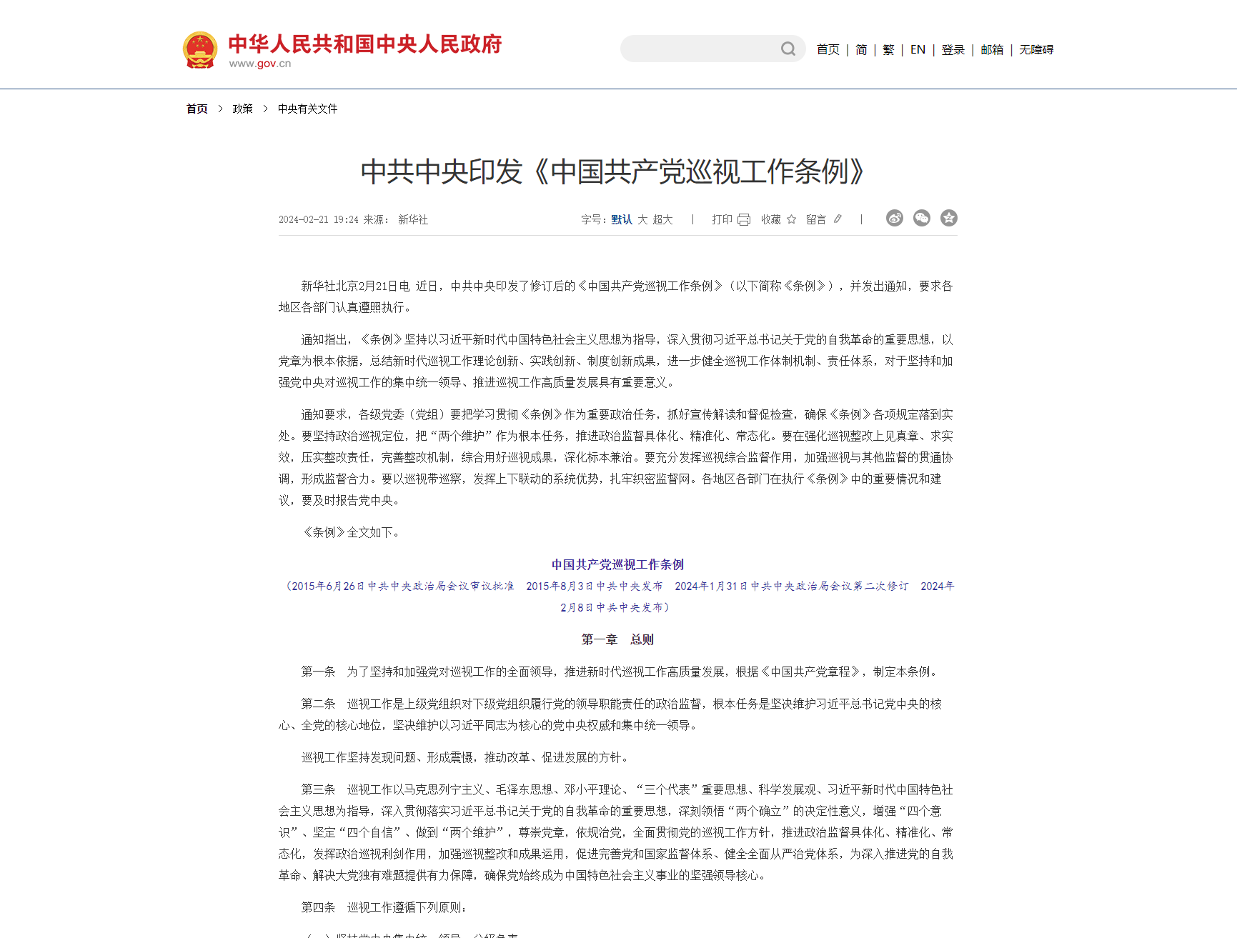 中國共產(chǎn)黨黨內(nèi)法規(guī)執(zhí)行責(zé)任制規(guī)定(試行)(2019年8月30日中共中央政治局會(huì)議審議批準(zhǔn)2019年9月3日中共中央發(fā)布) 第一條為了提高黨內(nèi)法規(guī)執(zhí)行力,推動(dòng)黨內(nèi)法規(guī)全面深入實(shí)施,根據(jù)《中國共產(chǎn)黨黨內(nèi)法規(guī)制定條例》,制定本規(guī)定。第二條各級黨組織和全體黨員負(fù)有遵守黨內(nèi)法規(guī)、維護(hù)黨內(nèi)法規(guī)權(quán)威的義務(wù)。各級黨組織和黨員領(lǐng)導(dǎo)干部必須增強(qiáng)“四個(gè)意識(shí)”、堅(jiān)定“四個(gè)自信...