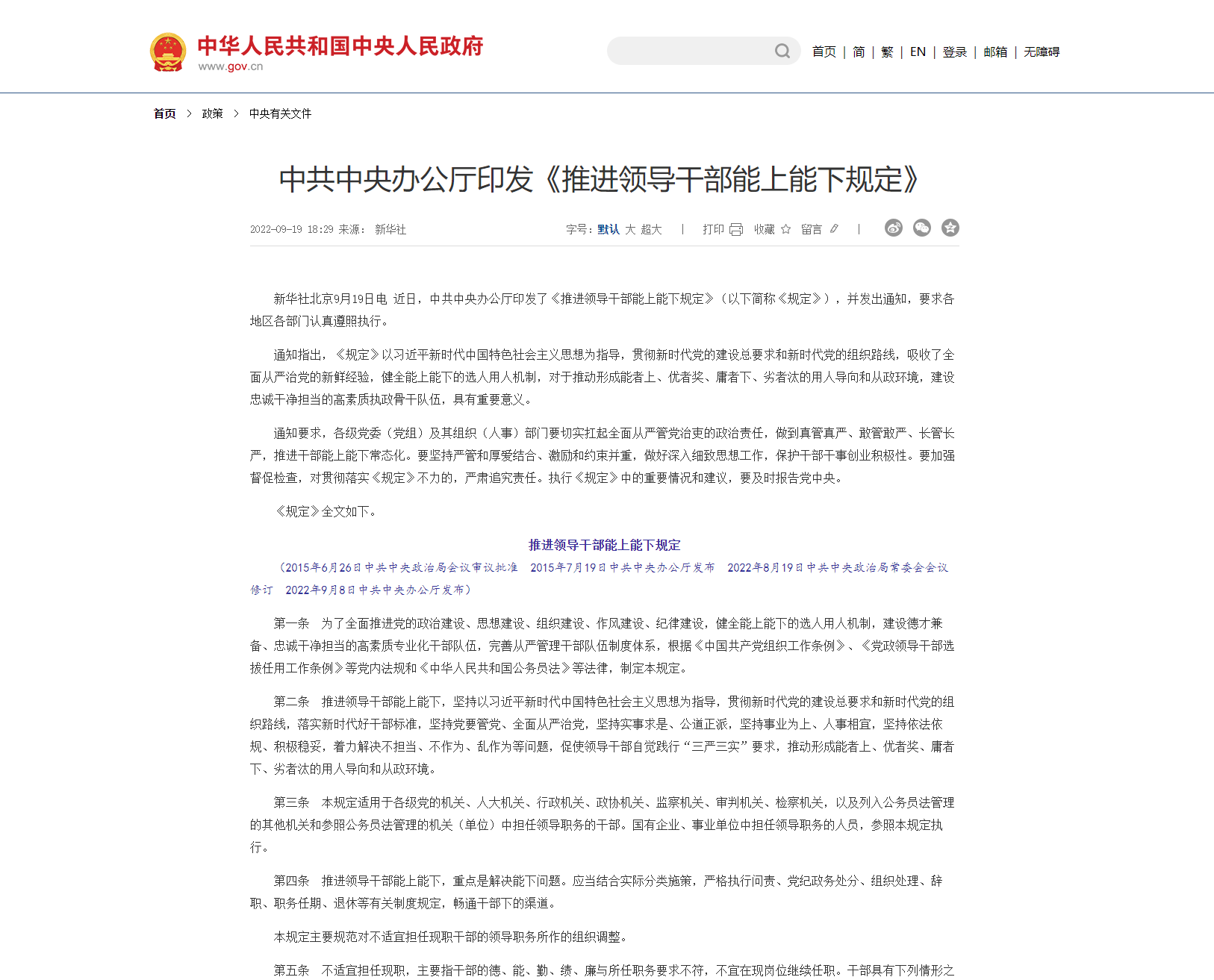 中國共產(chǎn)黨問責(zé)條例(2019年修訂,自2019年9月1日起施行) 第一條為了堅(jiān)持黨的領(lǐng)導(dǎo),加強(qiáng)黨的建設(shè),全面從嚴(yán)治黨,保證黨的路線方針政策和黨中央重大決策部署貫徹落實(shí),規(guī)范和強(qiáng)化黨的問責(zé)工作,根據(jù)《中國共產(chǎn)黨章程》,制定本條例。第二條黨的問責(zé)工作堅(jiān)持以馬克思列寧主義、毛澤東思想、鄧小平理論、“三個(gè)代表”重要思想、科學(xué)發(fā)展觀、習(xí)近平新時(shí)代中國特色社會(huì)主義思想為指導(dǎo),...