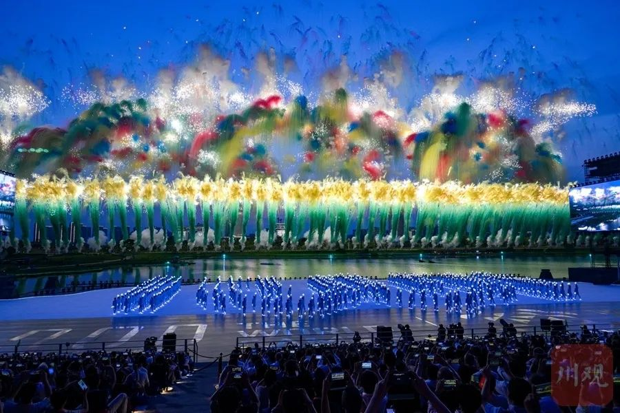 隨后,在“天府之檐”下,文體表演《錦繡之韻》、主題曲表演《友愛之聲》接續(xù)上演,將運動項目與中華文化、巴蜀元素有機結(jié)合,展示出“運動無限 氣象萬千”的主題。在萬眾期待下,世運圣火在湖中點燃,以水火相生的科技創(chuàng)新美學(xué),向全世界傳遞夢想之光。