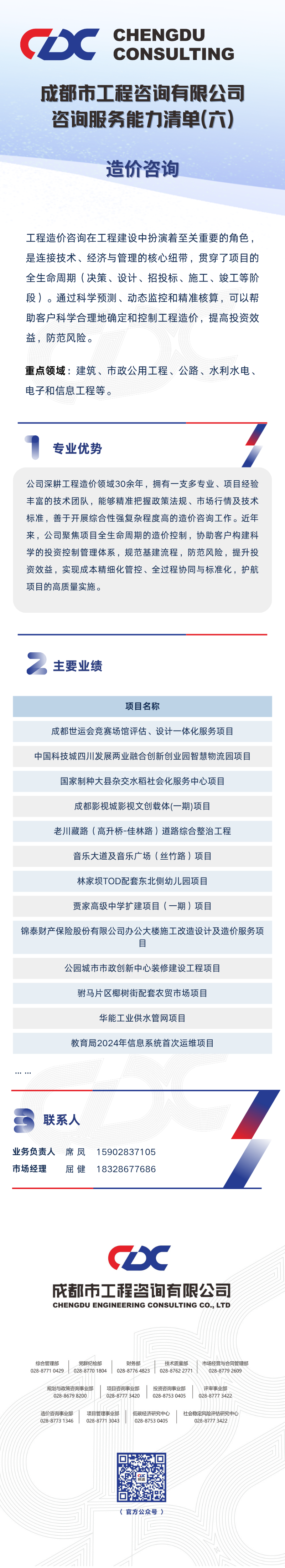 咨詢服務(wù)能力清單(六) 造價咨詢